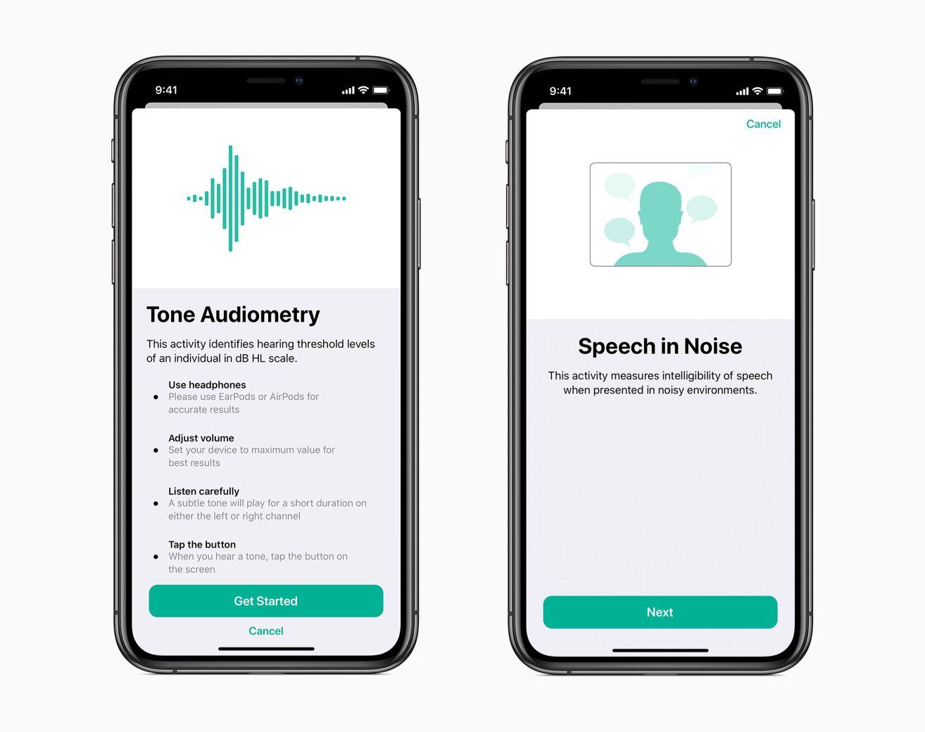 Speech in Noise: This task enables researchers to evaluate speech intelligibility in various background noise levels. During this test users listen to audio playback over headphones which includes recorded sounds of a cafe mixed as background noise as well as a spoken phrase. The participant will be asked to repeat back the spoken phrase using the Speech Recognition task. Throughout the task, the cafe background noise will increase in levels, allowing developers to calculate the Speech Reception Threshold (SRT) of a user.